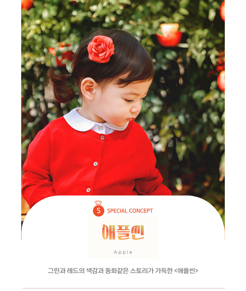 사과 정원 속에서 진지한 눈빛으로 사과를 바라보거나,