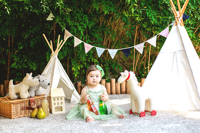 하얀 천으로 만든 아기 전용 인디언텐트가 자리잡고 있죠.